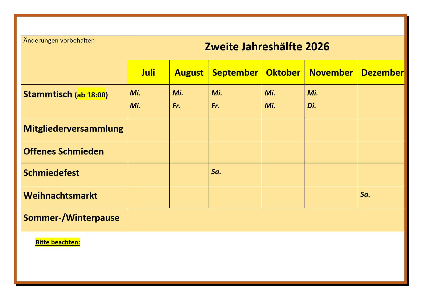Unsere Mitgliederversammlung findet am Freitag den 06.03.2026 um 19:00 Uhr im Versammlungsraum (1.OG) der Schmiede in der Dürerstr. 20a statt.